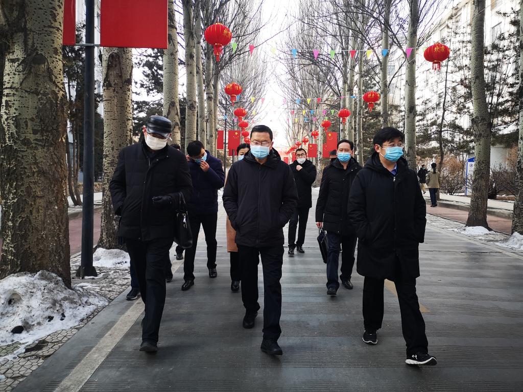 128上午,党委书记毛学荣,副校长赵海兴、许存宁,纪委书记秦燕鸣及人事处、教务处、后勤管理处、保卫处、宣传部、研究生院、校办等部门相关负责人,在城西校区召开新型冠状病毒感染的肺炎防控工作现场办公会。现场对城西校区门卫登记、消毒防护、住户登记等工作进行了检查,听取了人事处、学生工作处、保卫处、后勤管理处等部门的疫情防控工作汇报,对学校疫情防控工作进行了再动员、再部署、再安排。