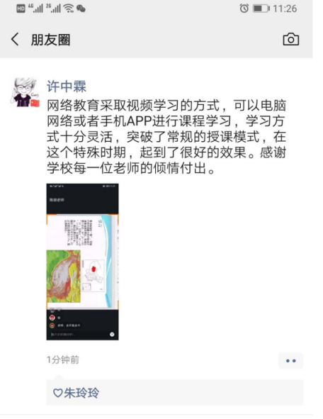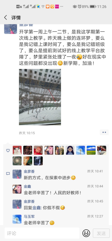 第一次接受任课老师做主播的同学们,对线上学习都充满了好奇与期待,早早地进入直播群等待课程开始,对老师在直播时遇到的各种小插曲都表示理解和体谅。同学们都说:老师和我们都是第一次上网课,大家虽然不能面对面地在一起上课,中途也可能会遇到一些麻烦,但大家都在尽量克服,只为了达到更好的学习效果。在家学习比在校时更自由,所以得靠个人自觉;但老师们会通过大学慕课等多种资源整合的方式给同学们传递更丰富、更精彩的教学内容。