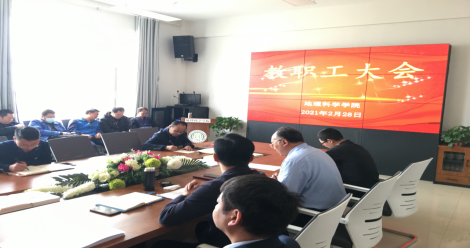 召开2021年春季学期开学工作会议,部署新学期各项工作,会议由党总支书记、副院长杨登兴主持,副书记洛加才让、副院长毛旭锋、副院长杨显明及学院全体教师参加会议。