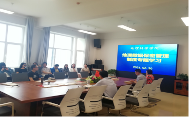 在学习中,学院党总支书记、副院长杨登兴强调了日常科研、教学工作中做好地理数据保密工作的重要性,要求大家以习近平总书记总体国家安全观为指导,按照国家相关规章制度开展教学、科研活动。