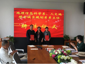 会上,葛岳静院长向新聘任的地理信息科学系主任陈琼副教授、人文地理与城乡规划系主任仲俊涛副教授颁发了聘书上,陈琼、仲俊涛同志分别作了表态发言。