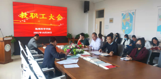 召开教职工会议,对学院近期各项工作进行安排部署。会议由院党总支书记、副院长杨登兴主持,副书记洛加才让、副院长毛旭锋、杨显明、院长助理金鑫及学院全体教师参加会议。