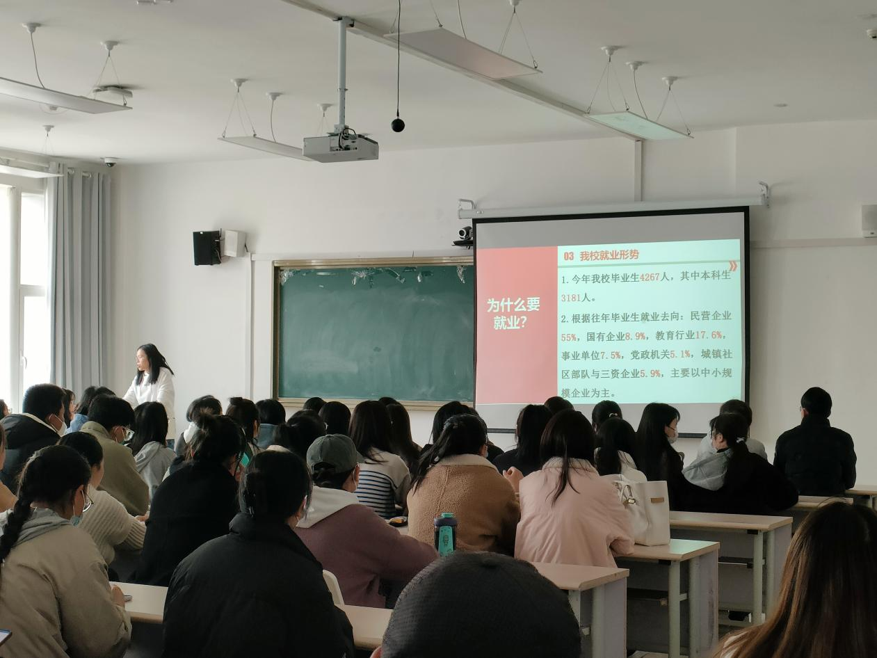 会上,陈小艳老师从为什么要就业、就业是什么、怎么实现就业等三个方面进行了动员。首先通过详实的数据,从国家、青海省、学校以及秀色女神