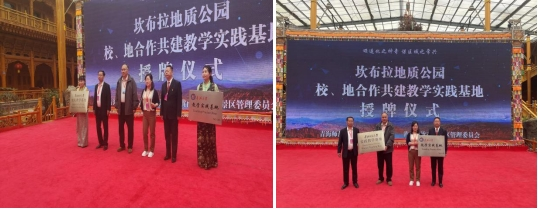 与坎布拉景区管委会负责人共同揭牌。在研讨期间,双方就深入开展教学实习、研学课程建设、自然地理研究、人文价值开发等方面达成了合作共识与意向。