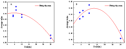 Figure 4. Class mean statistics of classification results at different scales for region A and B.