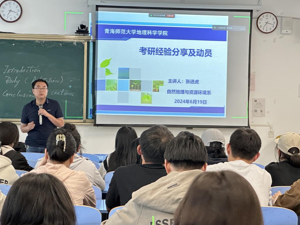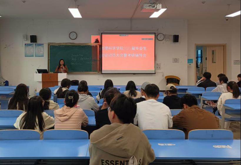 在西四楼开展了2025届本科生就业动员暨考研辅导交流会,自然地理与资源环境系主任张进虎、辅导员陈小艳、2024届已上岸研究生、2025届全体毕业生参加。