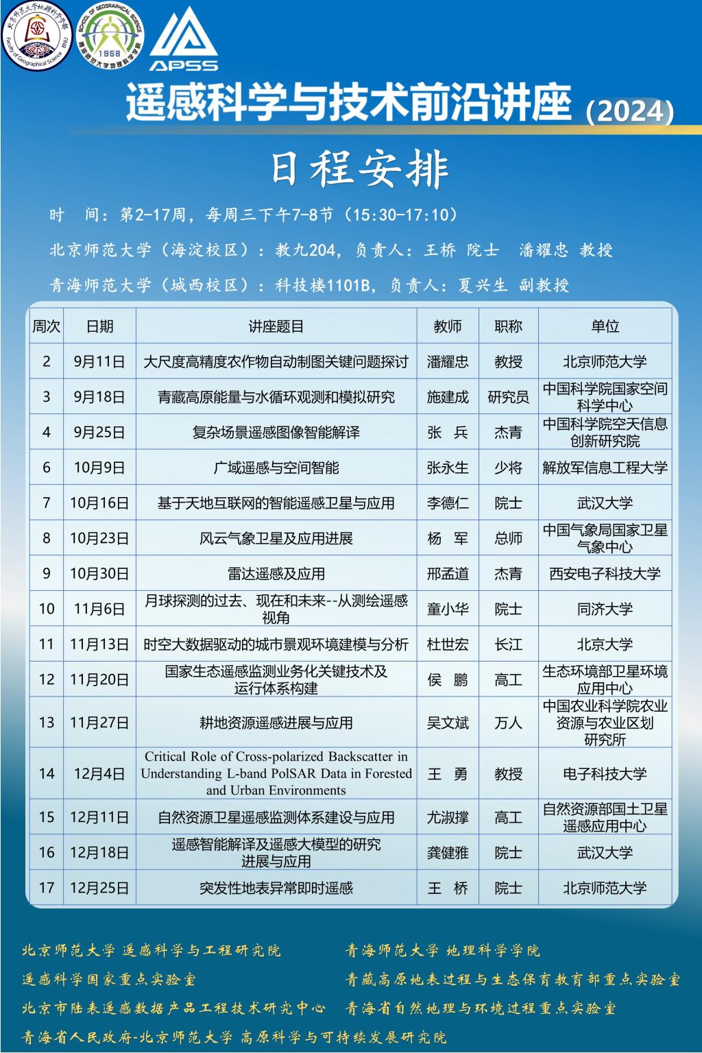 2024-2025学年秋季学期遥感科学与技术前沿讲座