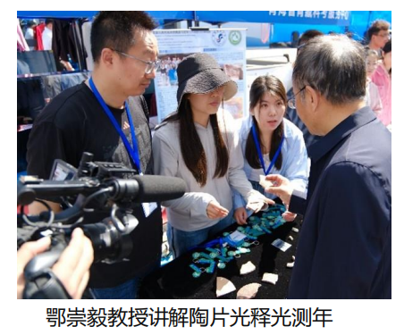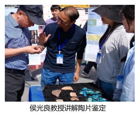 科普活动过程中,为了激发公众的好奇心和参与热情,省重点实验室精心制作了六张学术展板,系统地介绍了团队的研究成果。同时,展出了近几年在野外工作中发现的高原古人类石器工具与陶器碎片,让公众近距离感受考古的魅力。同时,省重点实验室侯光良教授、鄂崇毅教授与孙永娟副教授三位老师与六名硕博士研究生(曾泳昕、彭强、张兆康、刘佳欣、张洁、关佳萌)围绕“高原古人类的精确定年”、“史前人类生存策略”和“文化遗址的时空演变”等方面,为公众细致讲解知识内容。同时省重点实验室为参与活动的公众市民派发书签与钥匙扣等精美文创纪念品。